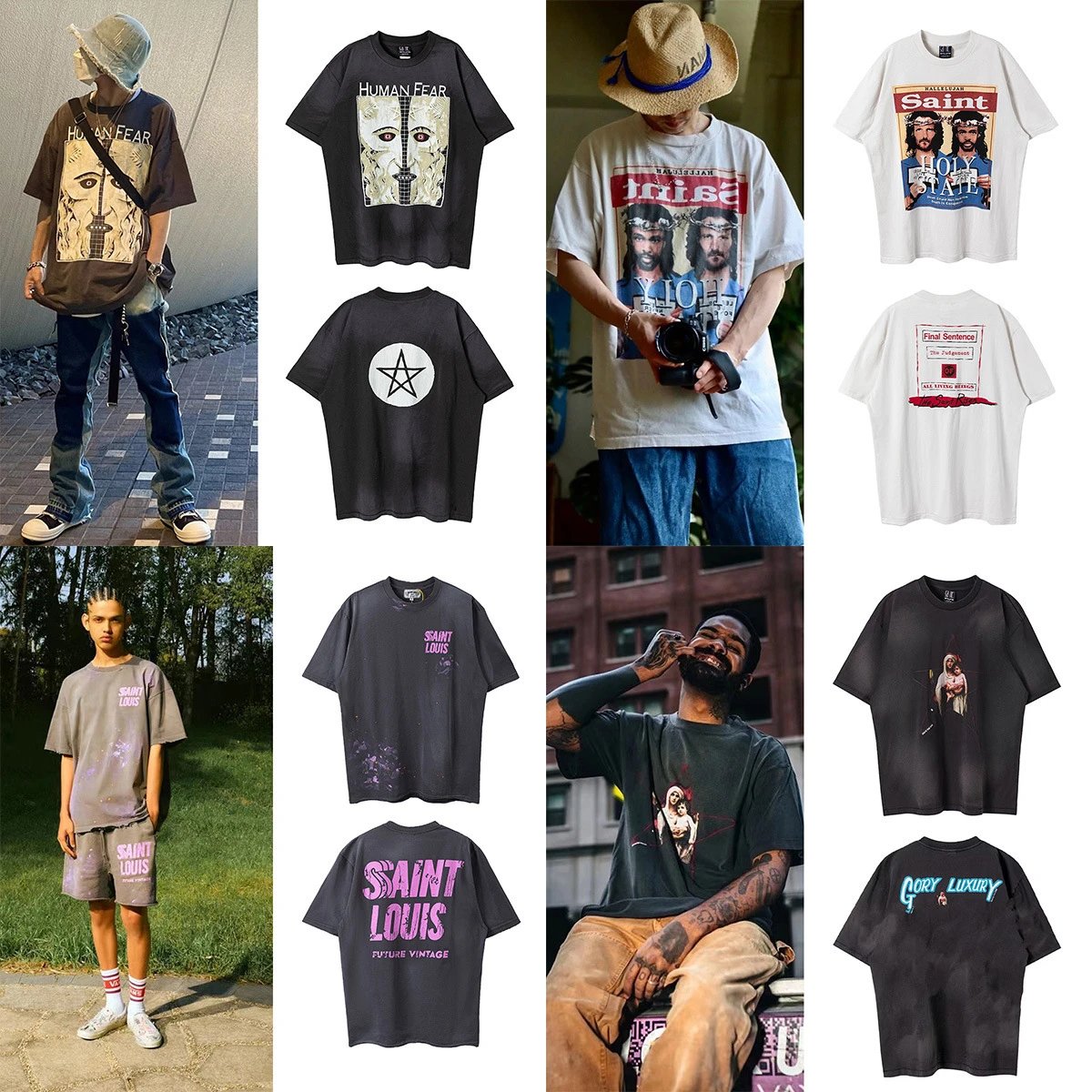American high street heavy washed and aged retro loose round neck short-sleeved T-shirt with letter print